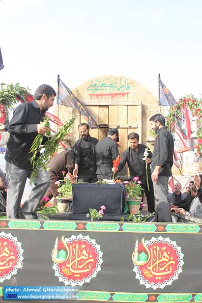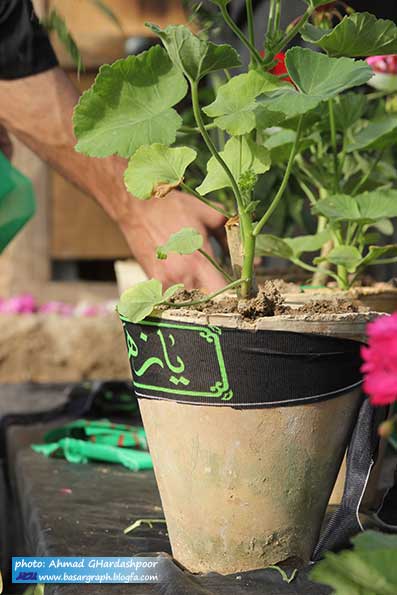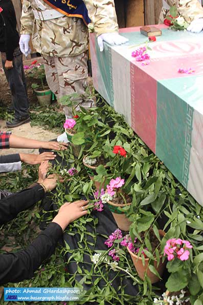 خلاصه اینبار بدون هیچ حساب و کتابی گلدانها رو دور و بر تابوت شهید چیدیم،